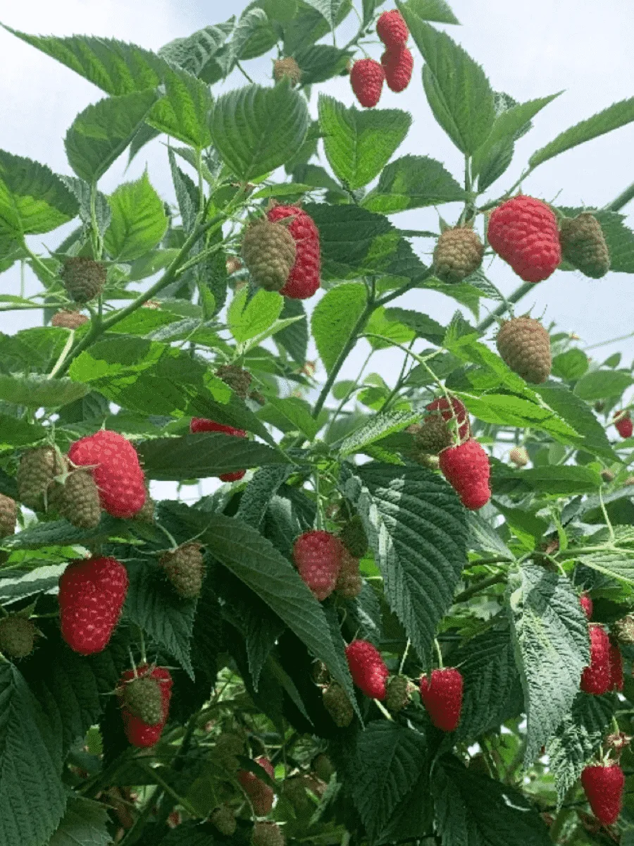 Малина сорта *Husaria* представляет собой элегантную кустарниковую форму с прямостоячими побегами высотой до двух метров, покрытыми мелкими шипиками, придающими растению благородный дикий шарм. Листья крупные, глубоко рассечённые на пять лопастей, ярко-зелёной окраски, слегка блестящие сверху и матовые снизу, создавая игру света и тени среди зелёного массива сада. Цветки белые, небольшие, собраны в рыхлые кисти, распускаются обильно весной, наполняя пространство тонким ароматом, привлекающим пчёл и бабочек. Растёт быстро, образует густые заросли, легко размножается корневыми отпрысками, распространяя свою красоту и свежесть повсюду, где её посадили заботливые руки садовода.