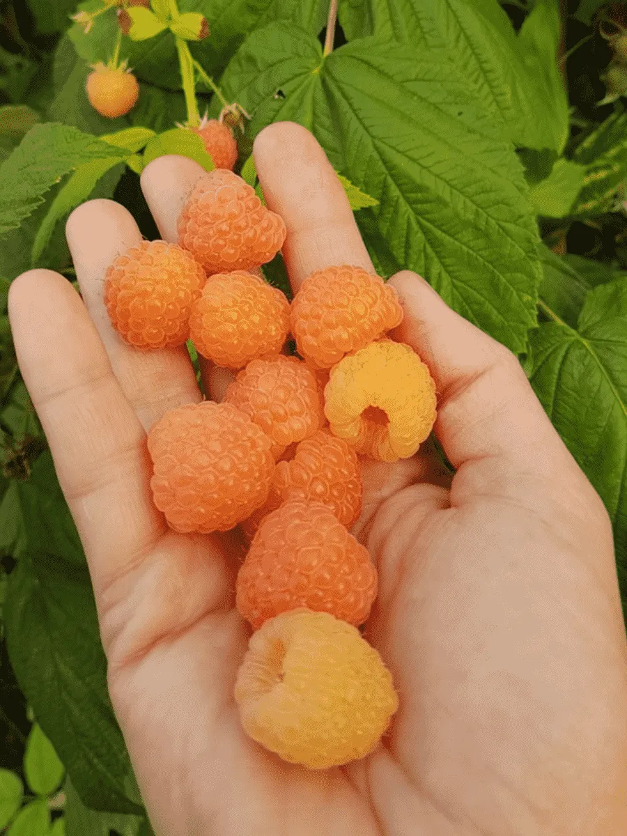 Малина обыкновенная сорта *Jantar* — очаровательное растение с нежной красотой и утончённым очарованием. Её раскидистые побеги образуют живописную поросль высотой до полутора метров, украшенную крупными листьями насыщенно-зелёного цвета, состоящими из пяти овальных листочков с зубчатыми краями и бархатистым пушком снизу. Цветёт малина обильно, покрываясь множеством мелких белоснежных цветков, собранных в рыхлые кисти, источающих тонкий аромат, привлекающий пчёл и шмелей. Растение предпочитает плодородные почвы и солнечные места, легко размножается корневыми отпрысками, быстро осваивая пространство вокруг себя. Этот сорт отличается устойчивостью к болезням и неприхотливостью в уходе, радуя садоводов своей декоративностью и способностью создавать уютные зелёные уголки сада.