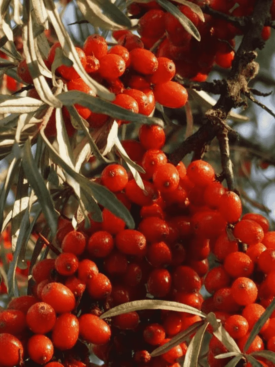 Облепиха масленичная — стройная кустарниковая красавица, достигающая высоты до трёх метров, украшенная густым покровом серебристо-зелёной листвы, словно покрытая нежнейшей дымкой утреннего тумана. Листья её узколанцетные, слегка волнистые по краям, сверху матово-зеленые, снизу же покрыты мягким пушком, придающим растению особую воздушность и лёгкость. Цветёт она скромно, мелкими невзрачными цветами, собранными в короткие серёжки, едва заметные среди густой зелени ветвей. Растение предпочитает солнечные места, легко переносит засуху и бедные почвы, распространено преимущественно в сухих степях и полупустынях юга России, где образует живописные заросли вдоль рек и оврагов, радуя глаз своей изысканной простотой и благородством облика.