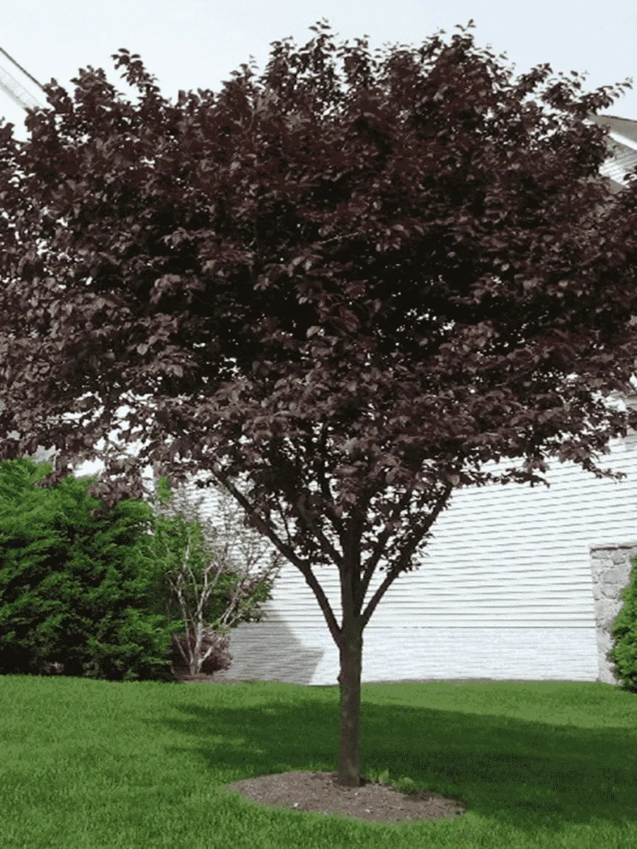 Слива растопыренная Nigra — живописная древесная красавица, поражающая своей утончённой грацией и благородством облика. Это невысокое дерево или крупный кустарник, достигающий высоты до пяти метров, отличается раскидистой кроной с тонкими гибкими ветвями, устремлёнными вверх и слегка склонёнными книзу, словно застывшие в задумчивости руки танцовщицы. Листья крупные, овально-ланцетной формы, тёмно-зелёные сверху и чуть светлее снизу, покрыты нежным пушком, придающим им бархатистость и мягкость очертания. Цветёт растение обильно и эффектно, покрываясь множеством мелких бело-розовых цветков, собранных в небольшие соцветия, источающих тонкий аромат, привлекающий насекомых-опылителей. Осенью листья приобретают насыщенные оттенки жёлтого и красного цветов, превращая дерево в яркое украшение осеннего пейзажа. Растение предпочитает солнечные места, хорошо переносит засуху и морозоустойчиво, распространено преимущественно в южных регионах Европы и Азии, где украшает сады, парки и природные ландшафты своим неповторимым очарованием.