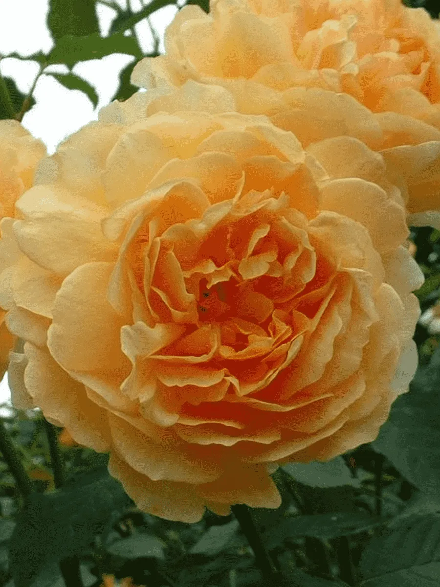 Роза английская кустовая *Molineux* пленяет взор роскошной кроной густых зелёных листьев насыщенного оттенка, слегка волнистых по краям и покрытых нежным восковым блеском, придающим растению изысканный благородный шарм. Цветки крупные, полумахровые, раскрываются постепенно, демонстрируя градацию оттенков от золотисто-жёлтого до кремово-абрикосового тона, создавая впечатление мягкого солнечного света, застывшего среди лепестков. Бутоны формируются обильно, располагаясь одиночно либо небольшими группами, украшая собой каждый побег пышного куста высотой около метра-полтора. Аромат цветков тонкий, лёгкий, едва уловимый, словно дыхание летнего утра после дождя. Растёт быстро, легко адаптируется к различным условиям, предпочитая солнечные места и плодородную почву, радуя садоводов своим продолжительным цветением с июня до поздней осени.