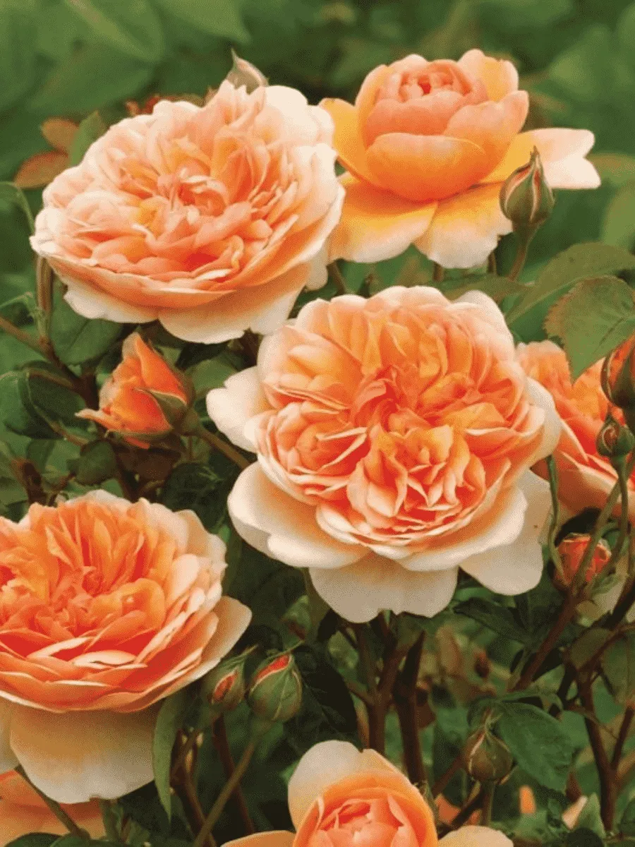 Роза английская кустовая *Port Sunlight* пленяет взор своей утончённой красотой и благородством форм. Куст средней высоты, раскидистый, густо облиственный, обладает мощной корневой системой и крепкими побегами, покрытыми редкой колючестью. Листья тёмно-зелёные, матовые, плотные, слегка морщинистые, состоят из пяти-семи овальных листочков с волнистым краем, придающих растению особую декоративность даже вне периода цветения. Цветки крупные, полумахровые, чашевидные, собраны в небольшие соцветия, раскрываются постепенно, демонстрируя нежную палитру оттенков от кремово-белого до нежно-розового с лёгким золотистым оттенком в центре лепестков. Аромат тонкий, изысканный, напоминает старинные сорта роз с нотами мёда и специй. Период цветения продолжительный, начинается в июне и продолжается до поздней осени, радуя садоводов пышностью и элегантностью каждого бутона. Растение устойчивое к болезням, зимостойкое, прекрасно адаптируется к различным условиям выращивания, предпочитая солнечные места и плодородные почвы.