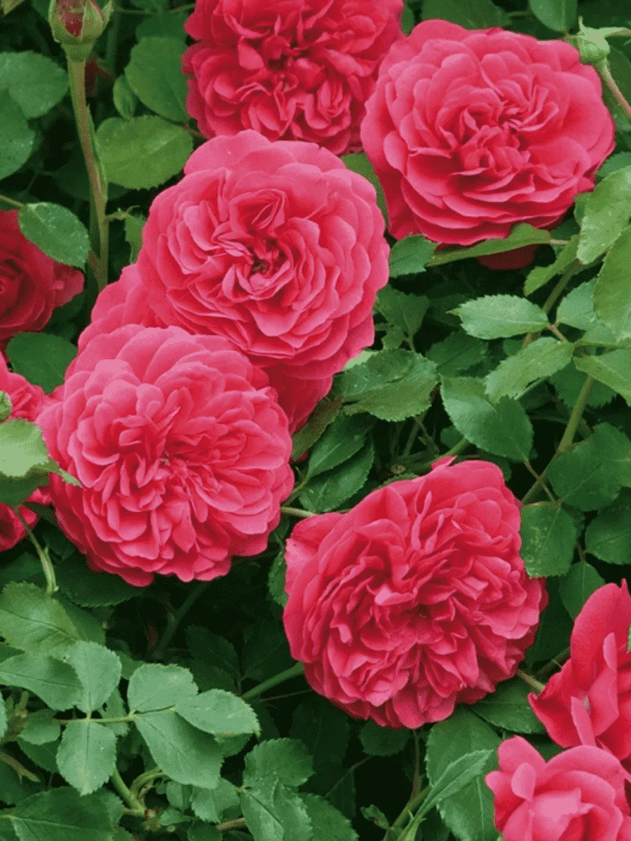 Роза Английская кустовая *Sir John Betjeman* пленяет взор роскошной кроной густых зелёных листьев насыщенного оттенка, слегка волнистых по краям и покрытых нежным восковым блеском, придающим растению изысканный благородный шарм. Цветки крупные, полумахровые, раскрываются постепенно, демонстрируя градацию оттенков от нежно-кремового до золотисто-жёлтого цвета, источают тонкий аромат, напоминающий запах старых английских садов. Бутоны появляются обильно, формируя пышную шапку соцветий, украшающих растение практически всё лето вплоть до первых заморозков. Куст компактный, аккуратный, достигает высоты около метра, отличается устойчивостью к болезням и неприхотливостью в уходе, прекрасно адаптируется к различным условиям выращивания, радуя глаз своей утончённой красотой и элегантностью форм.