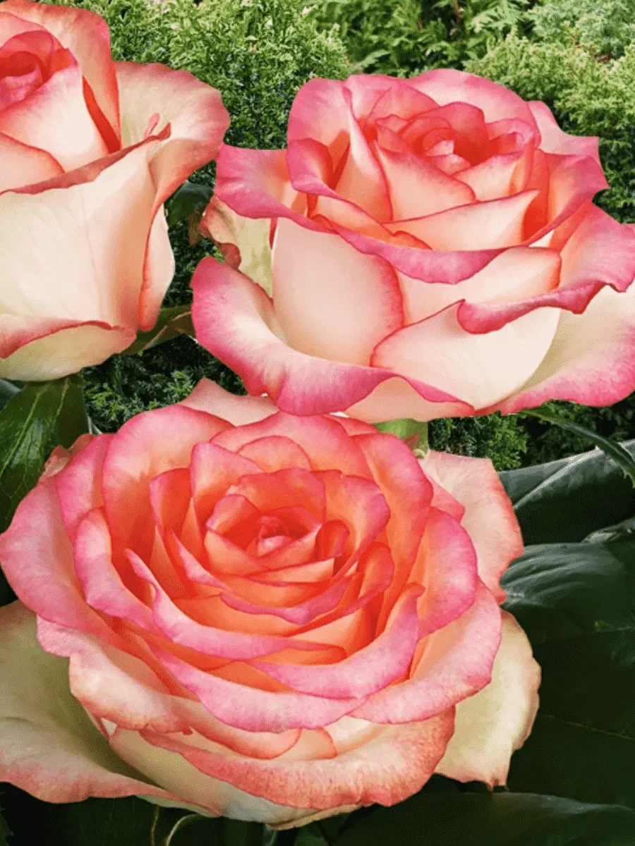 Чайно-гибридная роза сорта *Jumilia* пленяет взор изысканным сочетанием нежности и благородства форм. Её прямостоячие побеги достигают высоты до полутора метров, украшенные крупными тёмно-зелёными листьями овальной формы с характерной глянцевой поверхностью, придающей растению особую элегантность. Цветки одиночные, крупные, диаметром около десяти сантиметров, раскрываются постепенно, демонстрируя совершенство лепестков насыщенного кораллово-розового оттенка с едва уловимым золотистым отливом в центре бутона. Аромат цветка тонкий, лёгкий, слегка фруктовый, наполняющий пространство тонким шлейфом свежести. Период цветения продолжительный, начинается в июне и продолжается вплоть до первых заморозков, радуя садоводов пышностью и красотой. Растёт сорт преимущественно в умеренных климатических зонах, предпочитая солнечные места с плодородной почвой и регулярным поливом, легко адаптируясь к различным условиям выращивания благодаря своей выносливости и устойчивости к болезням.