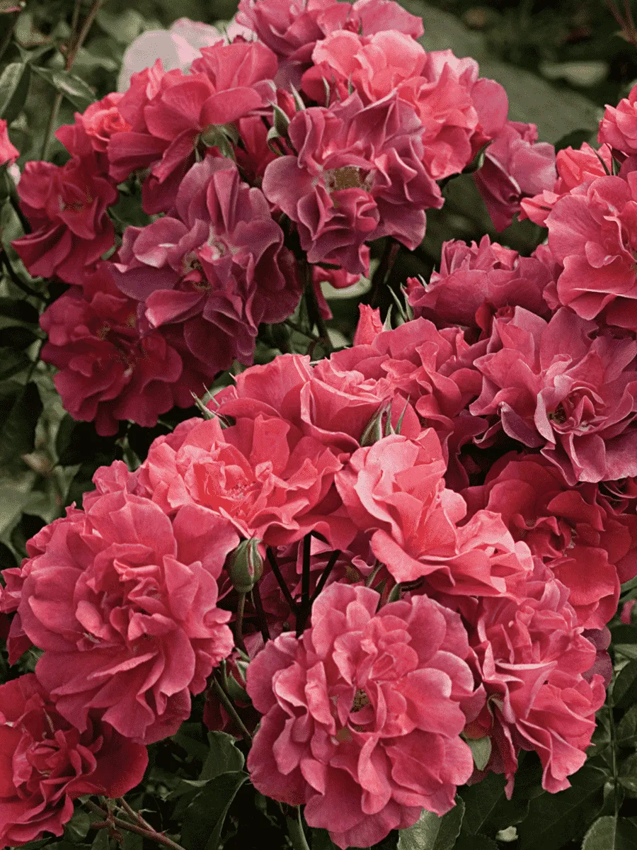 Роза флорибунда *Cinco de Mayo* пленяет взор роскошной кроной густых зелёных листьев насыщенного оттенка, слегка блестящих и матовых одновременно, словно покрытых тонким слоем утренней росы. Листья имеют характерную овально-ланцетную форму с мелкими зубчиками по краям, создавая впечатление нежности и утончённости. Цветки этой розы поражают своей элегантностью и изысканностью: крупные бутоны раскрываются пышными соцветиями, состоящими из множества лепестков глубокого красного цвета с едва уловимым пурпурным отливом, будто отражающим закат солнца над бескрайними просторами мексиканских прерий. Аромат цветков тонкий, лёгкий, почти незаметный, однако придающий особую атмосферу саду. Куст компактный, ветвистый, достигает высоты около метра, прекрасно подходит для бордюров и небольших клумб. Растёт быстро, легко адаптируется к различным условиям выращивания, устойчива к болезням и неблагоприятным погодным факторам, радуя садоводов своим великолепием долгие годы.