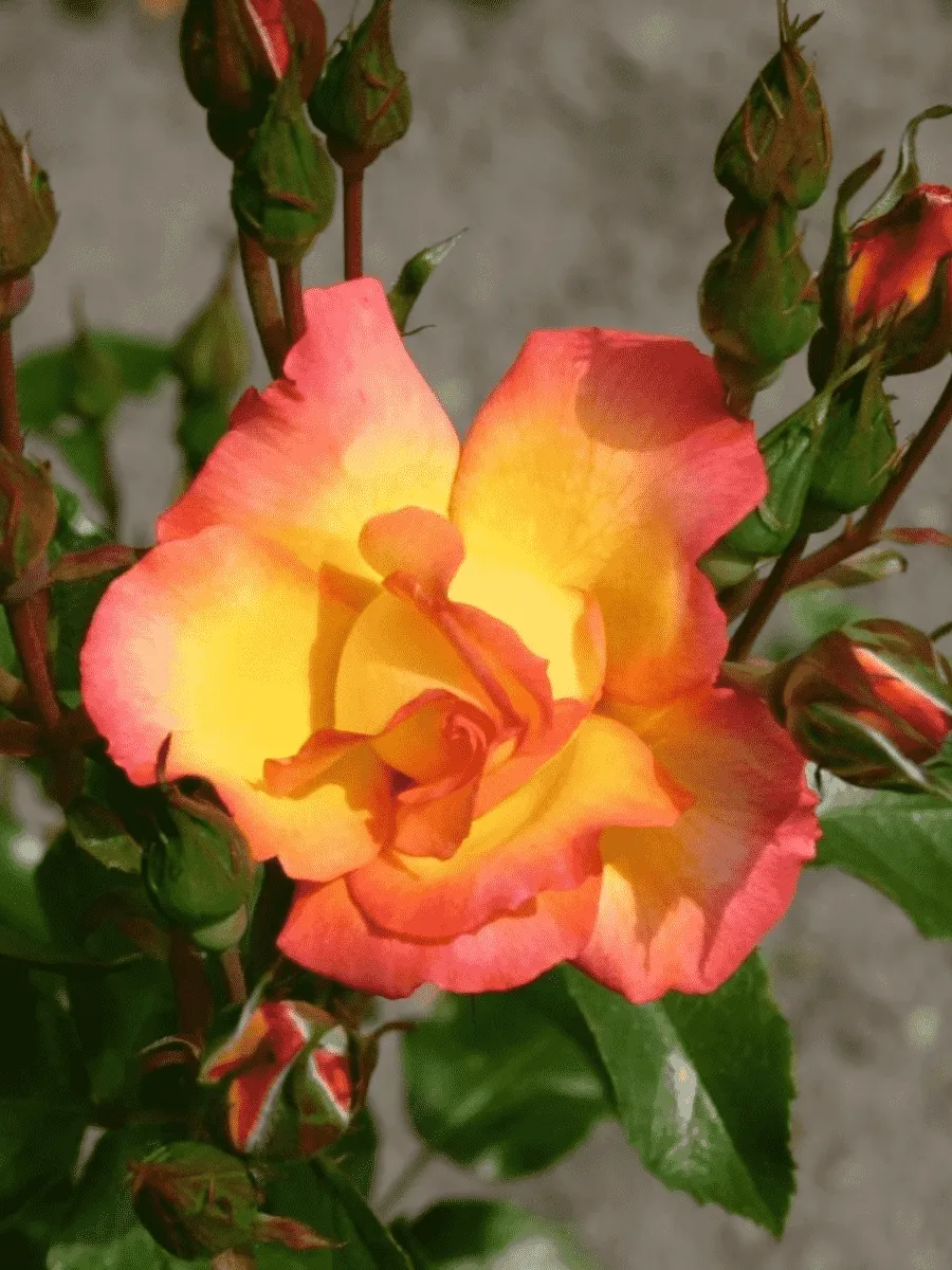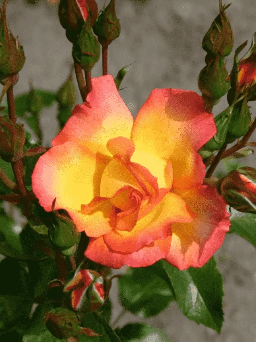 Роза кустовая *Bonanza* пленяет взор своей жизнерадостной красотой и буйством красок. Это компактный кустарник высотой до одного метра с густой кроной, состоящей из множества тонких ветвей, покрытых мелкими тёмно-зелёными листьями овальной формы с лёгким блеском и слегка зазубренными краями. Цветки розы поражают насыщенным ярко-оранжевым оттенком, переходящим в золотисто-жёлтый центр, создавая впечатление солнечного сияния среди зелени сада. Бутоны раскрываются постепенно, демонстрируя пышную махровость лепестков, собранных в чашевидные соцветия диаметром около пяти сантиметров. Аромат цветков тонкий, едва уловимый, придающий саду особую атмосферу свежести и гармонии. Растёт быстро, легко адаптируется к различным условиям, устойчива к болезням и неблагоприятным погодным факторам, радуя садоводов своим продолжительным цветением с июня до поздней осени.