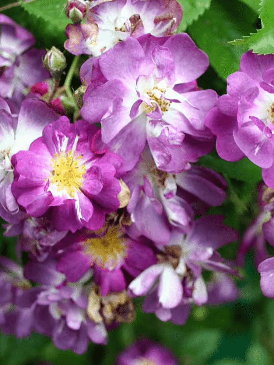 Роза плетистая Veilchenblau очаровывает своей нежной красотой и утончённостью форм. Это элегантная полувьющаяся роза с гибкими побегами длиной до трёх метров, покрытыми тёмно-зелёными блестящими листьями овальной формы с лёгким глянцем и слегка волнистым краем. Цветки небольшие, диаметром около пяти сантиметров, собраны в рыхлые кисти по несколько штук, раскрываясь постепенно от центра соцветия. Лепестки густо-махровые, бархатистые, переливающиеся оттенками фиолетового, лилового и синего цветов, создавая впечатление таинственного мерцания драгоценных камней. Аромат цветков тонкий, едва уловимый, придающий саду атмосферу изысканной гармонии. Растёт быстро, легко переносит обрезку и формирует живописную зелёную массу, идеально подходящую для украшения арок, пергол и беседок. Особенно эффектна эта роза в утренние часы, когда её цветы словно светятся изнутри мягким сиреневым светом, подчёркивая свою уникальность среди множества садовых растений.